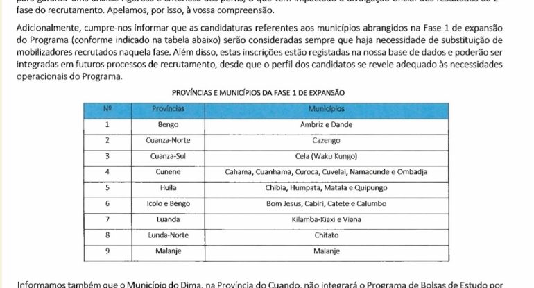 NOTA INFORMATIVA: Processo de Recrutamento de Mobilizadores – Fase 2 de Expansão do programa de Bolsas de Estudos