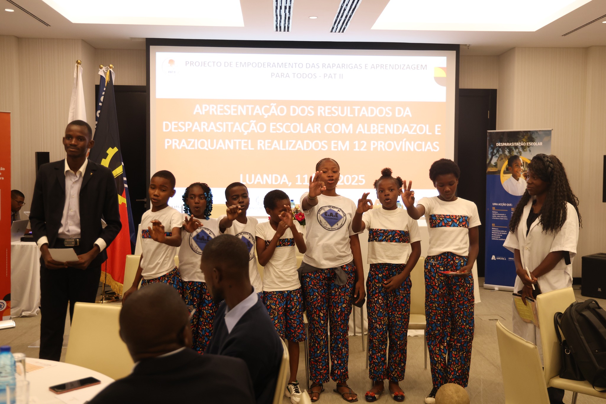 Luanda, 11 de Dezembro de 2025 – O evento de alta relevância estratégica partilhou os progressos significativos alcançados na melhoria da saúde e rendimento escolar das crianças angolanas. Desde Novembro de 2024, a Campanha de Desparasitação Nacional Escolar abrangeu 3.294.513 alunos entre os 5 e 14 anos com Albendazol e Praziquantel. O número de beneficiários mais que duplicou a meta inicial do projecto, que estimava abranger 1,2 milhões de crianças e jovens.